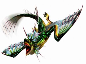 | 胸ビレで強風を巻き起こし、ブレスで相手の足元をすくうように薙ぎ払う。 特異個体ガノトトス亜種が繰り出す、風圧と水圧との合わせ技! | |