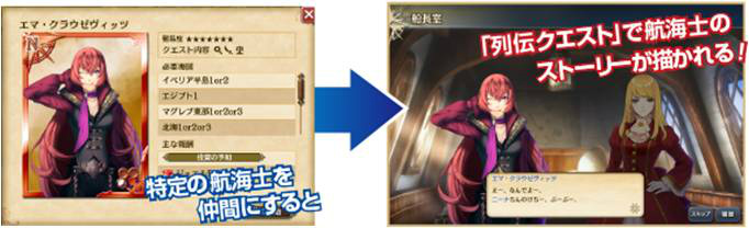 他の航海士の力を借りることで能力値がアップ。また、一部の航海士を仲間にすると、高難易度の「列伝クエスト」にチャレンジできます。