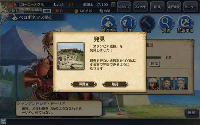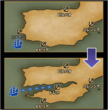 「探検」、「交易」、「海戦」の3つをバランスよく進めて、船団や航海士を鍛え、活動領域を広げていきます。