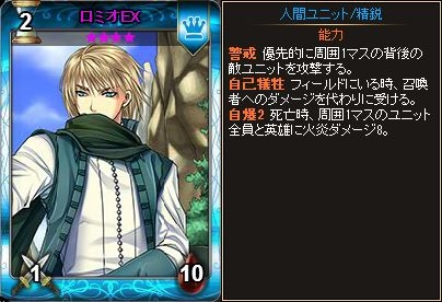 イベントクエストなどで「ロミオEX」を入手できる「ロミオEX GETキャンペーン」を実施いたします。ジュリエットを召喚できなくなった「ロミオEX」は、「警戒」「自己犠牲」で敵ユニットから英雄を守る能力と、「自爆」で敵を排除する能力を兼ね備えています。この機会にぜひGETしてください!