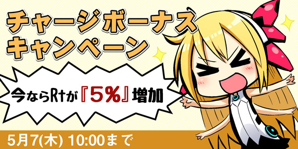 5%のボーナスがつく!一週間限定「チャージボーナスキャンペーン」実施中!