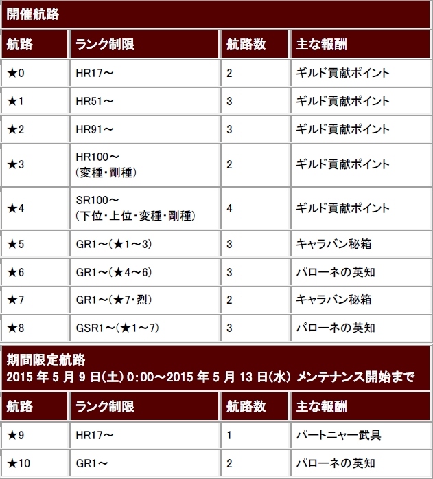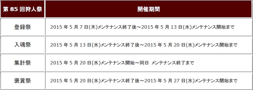 2015年5月7日(木)メンテナンス終了後~2015年5月13日(水)メンテナンス開始まで