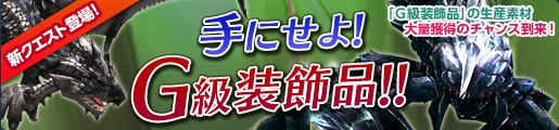 G級装飾品素材をお得に入手できる「珠玉の素材」シリーズを特別配信!今回は、新たに「跳緋獣」「炎妃龍」「桜火竜」が対象のクエストを配信いたします。