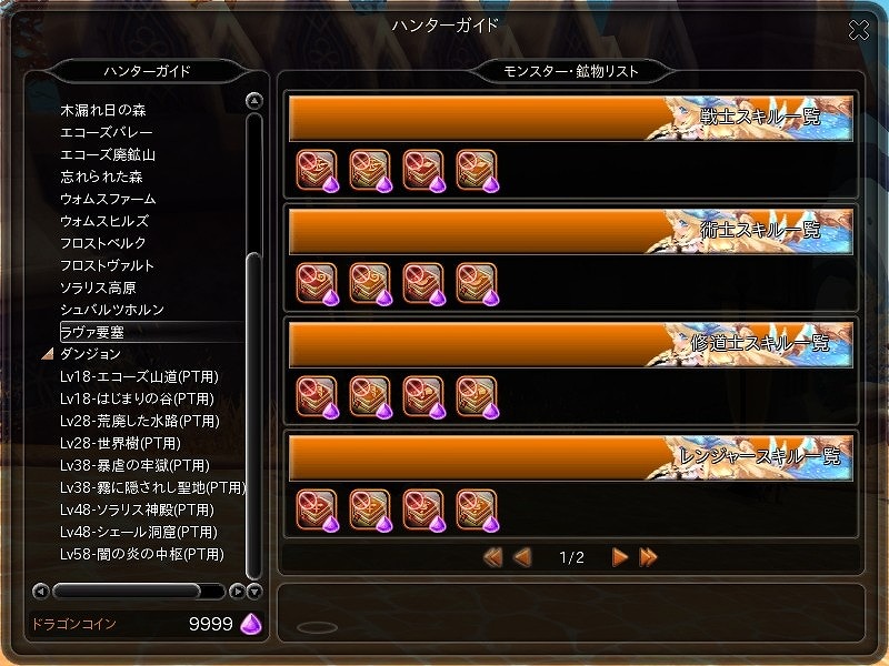 スキルを習得するアイテムは4月23日に実装したダンジョン「闇の炎の中枢」のパーティ用から獲得するチャンスがあります。その他の獲得方法として、ハンターガイドからも入手することができます。
