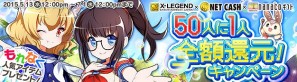 キャンペーン期間中にNET CASHまたはnanacoギフトでGコインをチャージした方の中から50人に1人の確率で、チャージ金額のNET CASHまたはnanacoギフトを全額還元します。