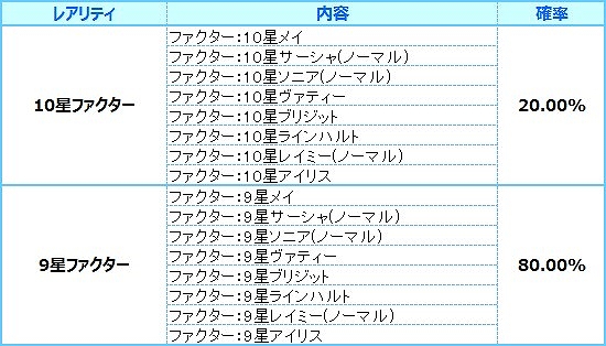 2015年5月14日(木)定期メンテナンスにて、VIP商店のアイテムを更新いたしました。「ヴァナート4」「イリスト4」「アガエナル4」からは、複数のストライカーの中からランダムでファクターを1体獲得することができます。