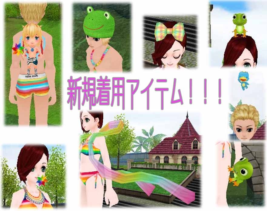 前回に続きまして、「雷神ちゃん」「風神くん」のコスチュームや、可愛いカエルの着用アイテム、虹をイメージした下着など盛りだくさんです。新モーションもたくさん増えて、より楽しくコミュニケーションができます。