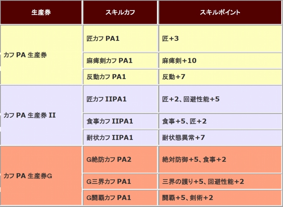 下記日時におきまして、期間中に「狩人応援コース」が有効な場合に、特典として各種スキルカフPA生産券がもらえる「狩人応援コースでスキルカフPA3種ゲット!」キャンペーンを開催いたします。