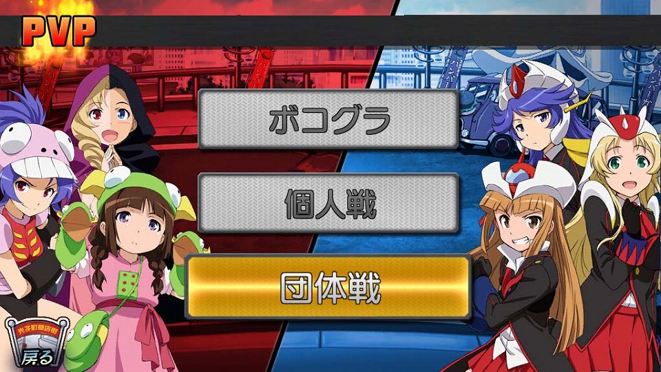 2015年6月18日(木)定期メンテナンスにて、PVPシステムに「団体戦」を実装いたしました。「団体戦」は、最大6人のプレイヤーが3vs3に分かれて対戦するチームワークが勝利の鍵になるPVPコンテンツです。報酬やランキングはありませんが、いつでも誰とでも対戦することができます。