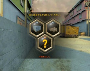 最初に子チームが隠れます。F1、F2、F3キーで変身するオブジェクトを選択して隠れよう!ラウンドによっては忍者に変身できることも?