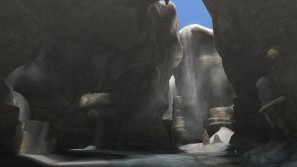| 過去の面影を今に残す水辺は、 ここに息づく生物の貴重な水源に。 | 地上の湖の水が引いたことで 入ることができるようになった洞窟。 |