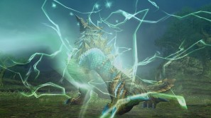 青白い雷光を纏い、「超帯電状態」となったジンオウガは、強大なパワーを発揮する。威力の高い放電能力を持ち合わせているとされているが、その詳細は謎に包まれている。