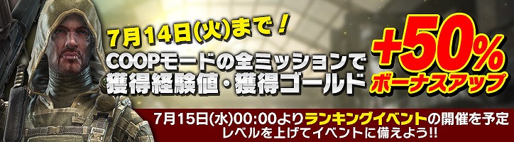 本日、7月7日(火)よりCOOP(PvE)モードの獲得経験値と獲得ゴールドが「+50」のボーナスアップイベントを開始いたしました。キャラクターのレベルを上げやすいこの機会にぜひHOUNDSをプレイしてみてください。