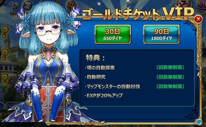 VIP効果中は、便利な機能が使用可能になり、入手EXPが20%アップします。