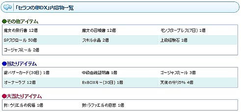 2015年7月9日(木)定期メンテナンスにて、エンジェルモールに「セラフの卵DX」を1ヵ月期間限定で追加いたしました。