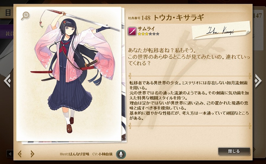 マジシャン系☆4の「カレナ・ストレーム」(CV:門脇舞以)、ローニン系☆3の「トウカ・キサラギ」(CV:小林由依)、2人の社員が新たに登場します。