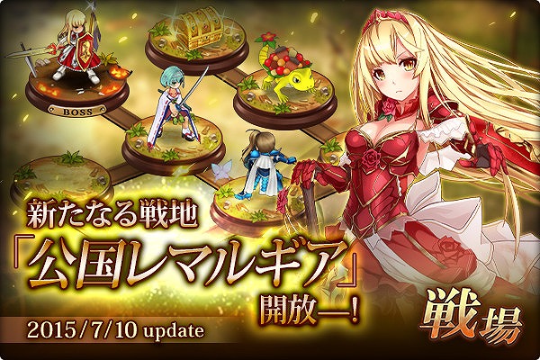「戦場」に新しいマップ「公国レマルギア」が登場します!第五のマップとなる「公国レマルギア」では、従来の戦場では登場しなかった強力な敵部隊が出現!また、参戦する度に地形が変わる新たなマップが大きな特徴です。