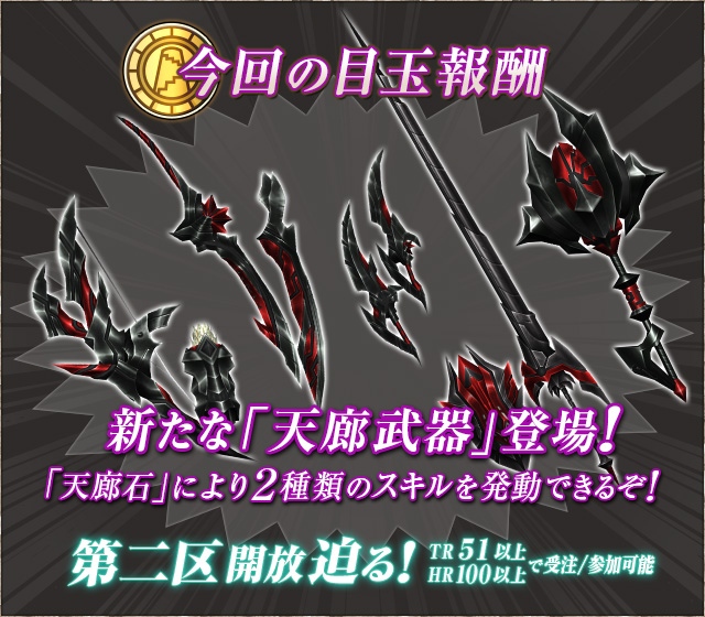 2015年8月下旬、天廊第二区開放決定!天廊第二区の受注・参加条件は「HR100/SR100」以上かつ「TR(タワーランク)51」以上となります。