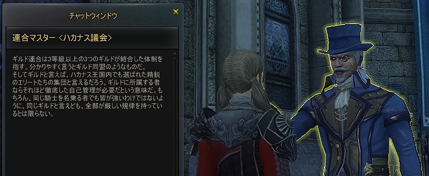 複数のギルドにて結成でき、連合となったギルドのメンバーは同じ連合のメンバーと連合チャットにてやりとりが可能です。また、同じ連合のメンバー同士はエクサラン無法地帯では交友関係となります。連合を組むにはギルドレベル3が必要で、1連合につき3ギルドまで所属可能です。