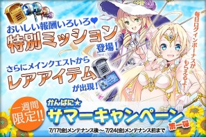 7月17日(金)メンテナンス後より7月31日(金)メンテナンス前まで、「かんぱに☆サマーキャンペーン」を開催いたします!期間中は冒険や装備開発に役立つゲーム内アイテムの入ったログインボーナスが毎日届きます!
