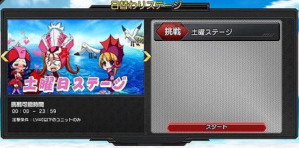 2015年7月23日(木)定期メンテナンスにて、ボコラッシュに日替わりステージを追加しました。日替わりステージでは、通常のボコラッシュとは違い、曜日ごとに報酬や挑戦条件が変わる特殊なステージとなっています。