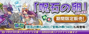 2015年7月23日(木)定期メンテナンスにて、エンジェルモールに強力な効果を持つ人気の強化アイテム「呪石の卵」シリーズを期間限定で追加いたしました。
