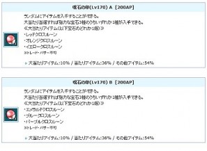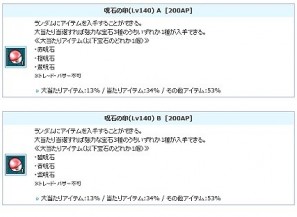 今回は「呪石の卵(Lv140)」から「呪石の卵(Lv190)」まで、幅広いレベル帯の装備アイテムに対応した品揃えになっております。さらに、生産速度や採集速度が上昇する強化アイテム「匠石の卵(Lv80)」や、装備に特殊な効果を付属させる「宝珠の卵140」も再び登場!