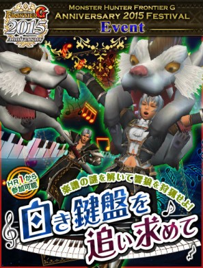 「MHF-G Anniversary 2015」イベントのひとつとしてオリジナル武器「しろしろ【ワンワン】」(狩猟笛)の生産素材を入手できるゲーム内イベント「白き鍵盤を追い求めて」を開催いたします。