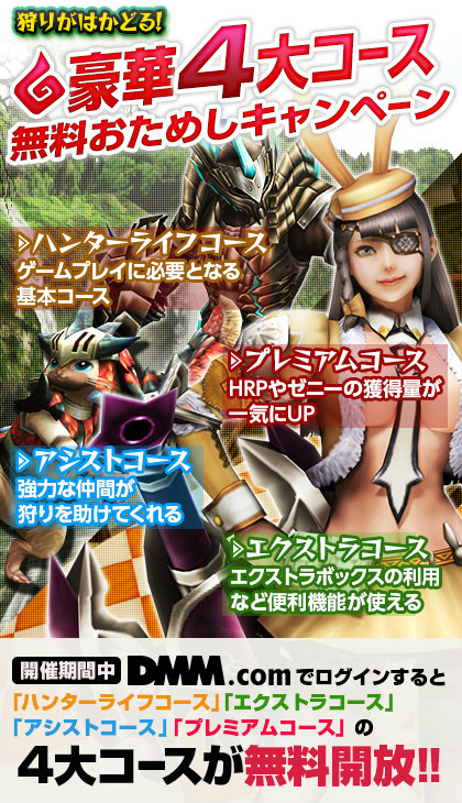 DMM.comオンラインゲーム限定で、「MHF-G」人気のプレミアムキットを対象に半額キャンペーンを実施!
