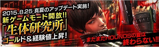 DMMゲームズは、「HOUNDS」において、8月25日に新ゲームモード「追撃」の時限ミッション「生体研究所」を実装した。
