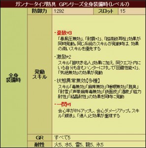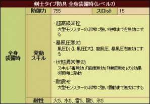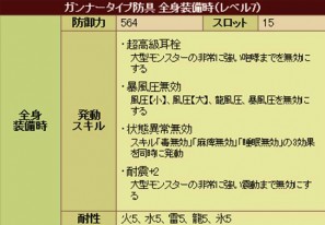 防具は、生産直後からHR17~のラヴィエンテで活躍できます。超高級耳栓・龍風圧無効・耐震+2が発動します。強化していくことで、G級ラヴィエンテにも役立つスキルが発動します。