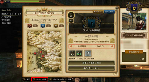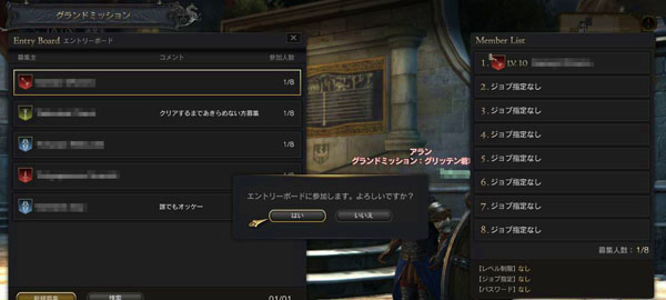 エントリーボードでは、パーティーメンバー募集の登録をしたり、募集中のパーティーの検索が可能です。