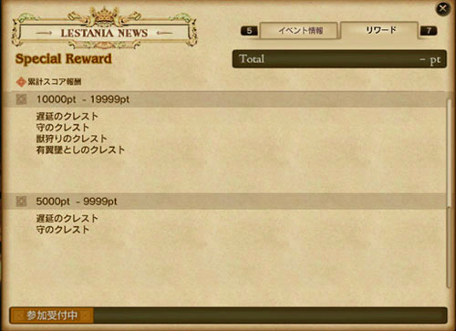 グリッテン砦攻防戦には2種類の報酬がありますが、今回の開催では「累計スコア報酬」はございません。
