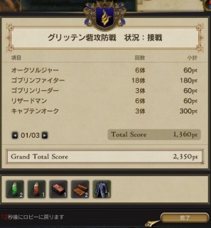 グリッテン砦攻防戦に参加する度に、獲得したスコアに応じて獲得できる報酬です。一定のスコアを獲得した際に、必ず獲得できます。