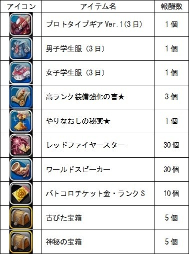 報酬アイテムはアバターの能力を変化させることができるアイテム「やりなおしの秘薬★」などの豪華アイテムがラインナップしております。ギルドメンバーと協力してミッション達成を目指しましょう!