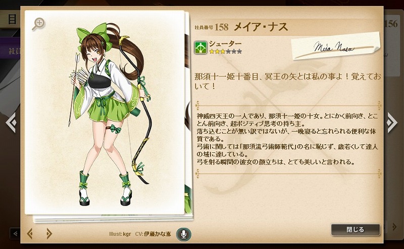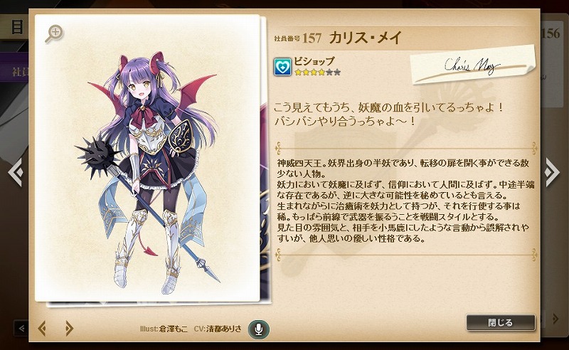 アーチャー系☆3の「メイア・ナス」、クレリック系☆4の「カリス・メイ」、2人の社員が新たに登場します。