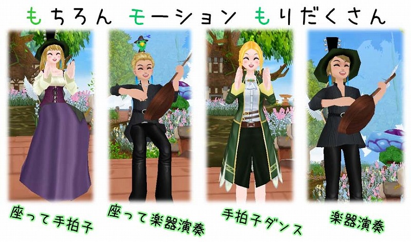 中世ヨーロッパの雰囲気を匂わす「中世カジュアル衣装_上(下)」や、吟遊詩人になれる「ミンストレル衣装」コスチュームなどが追加されています。新モーションもたくさん増えて、より楽しくコミュニケーションができます。