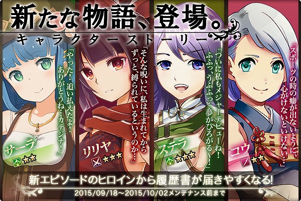 9月18日(金)のアップデートで「リリヤ」「ステラ」「サーラ」「コウ」4人のキャラクターストーリーが登場します。