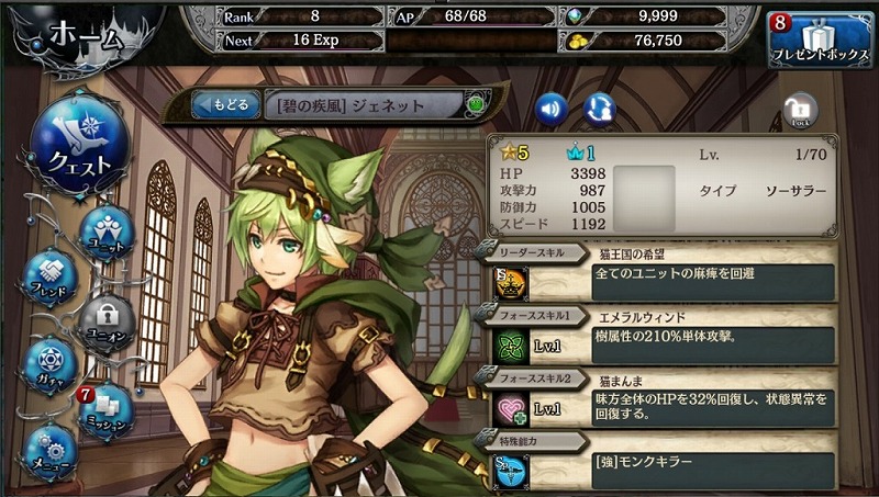 「ペルシャ=ルー」は2つの種族キラーを持ちつつ味方グループのスピードアップのリーダースキルと敵のスピードダウンのフォーススキルを持っています。また、「ジェネット」は幻獣契約させるとビッグマムに騎乗するユニットで、PCブラウザ版ではアイドルユニットLinQの姫崎愛未さんが声を演じています!