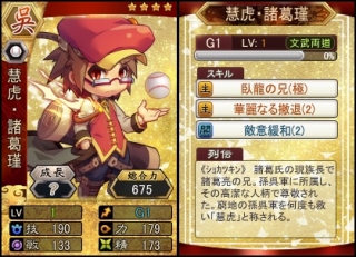 華麗なる諸葛一族の長兄。臥龍に並ぶ智はこの慧虎・諸葛瑾に御座います。