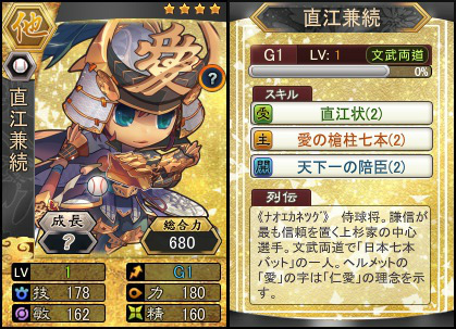 特典対象期間中に「11枚購入」を2回以上実行した方全員に、もれなく☆4「直江兼続」を1枚プレゼント!