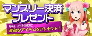 課金額を問わず、その月の初決済が行われた場合にアイテムをプレゼントする「マンスリー決済プレゼント」キャンペーンを開催いたします。