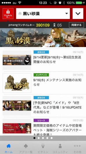 各ゲームタイトルの最新情報はもちろん、プレイヤー同士で情報交換ができるコミュニティや、貯めることでゲーム内のアイテムを手に入れることができる「ビタミン」などをお届けするポータルアプリ「Pmang」でいよいよ「黒い砂漠」もご利用できるようになりました。