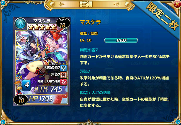 精霊カードから受ける通常攻撃ダメージを50%減少する。