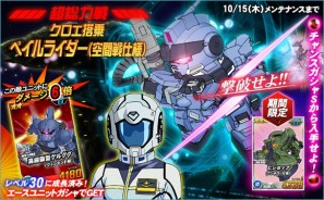 バンダイナムコオンラインは、「SDガンダムオペレーションズ」において、本日10月8日より超総力戦に「クロエ搭乗ペイルライダー(空間戦仕様/HADES)」を追加した。