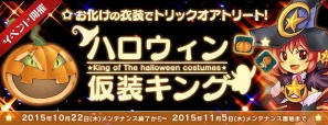 2015年10月22日(木)定期メンテナンス後から、イベント「ハロウィン仮装キング」を開催いたします。ハロウィンの時期にふらりと現れる魔女「アンジェリータ」が、今年もまたエデン大陸でハロウィンイベントを行なうようです!今年は彼女の家では豊作だったようで、大量の「かぼちゃ」をエデン大陸中に一気にばら撒きました。
