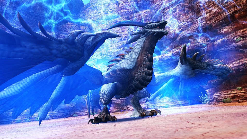 日の光を浴び、力を蓄えているかのような姿を捉えた。目撃例が数件しかないこのモンスターだが、雷を使った攻撃をするという情報もあることから、この行動はその方告と結びつくものではないかと考えられる。