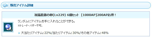 「祝福星槌の卵(Lv229)」販売期間