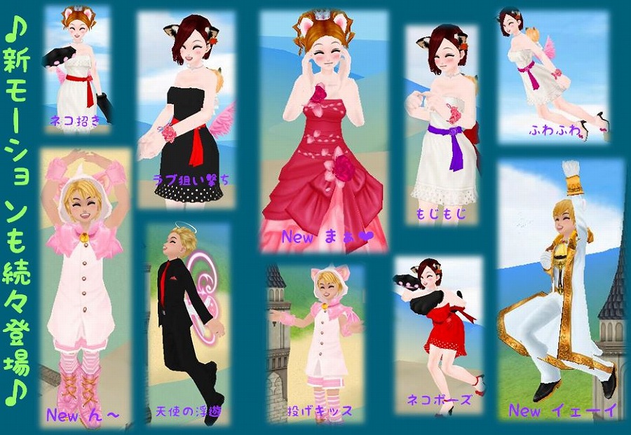 ネコ天使に相応しい新規着用アイテム「ネコ天使(騎士)ヘアー」や、新モーションの「まぁ」などが追加され、より楽しくコミュニケーションができます。