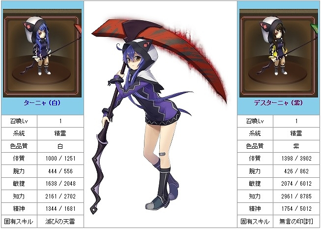 使用すると紫色品質のデスターニャ(レア)を獲得、Lv1から呼出可能。精霊系ペット。